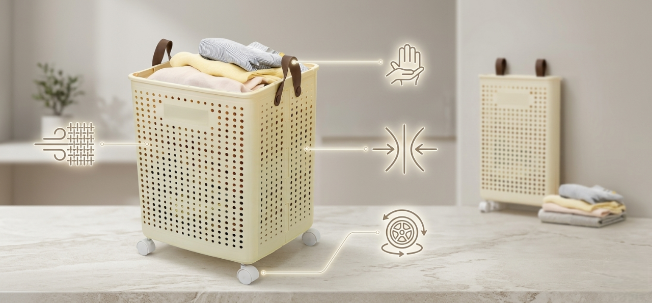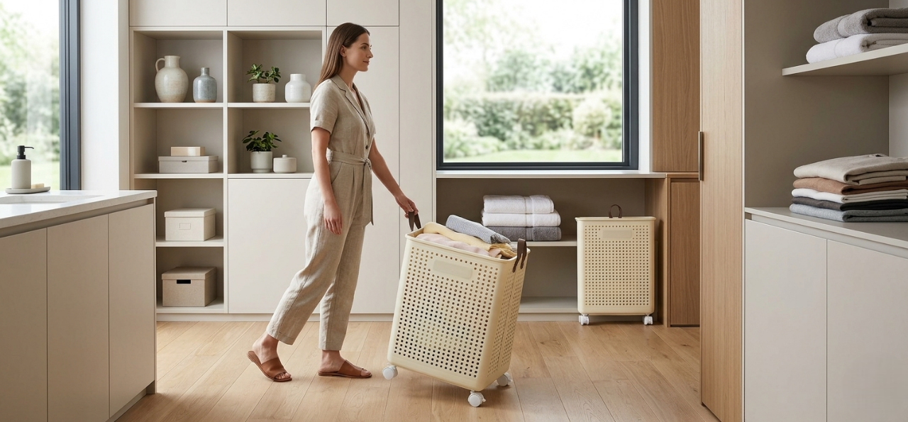 Discover our collection of rolling carts and foldable hampers for effortless laundry management.